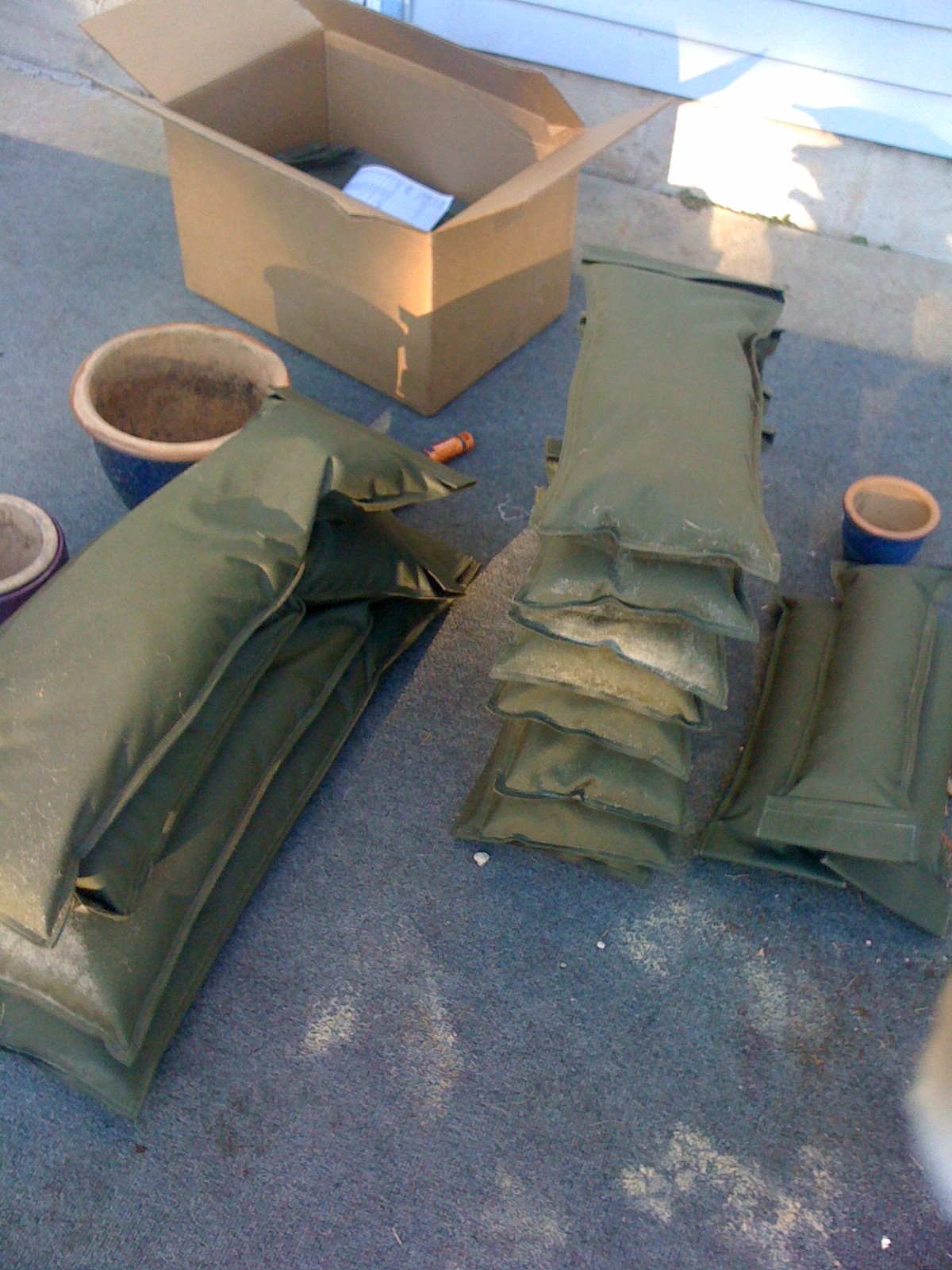 There are three sandbag filler sizes (35, 15, 10lbs) and 3 sandbag sizes (large, medium, and small). The max capacity for them is 160, 80, and 45.